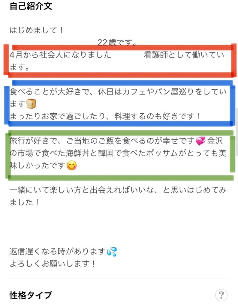 これはまさに、自己紹介文で「まずはメッセージで仲良くなりたいです!」の記載を解釈しなかったことで、起きてしまったミスである。