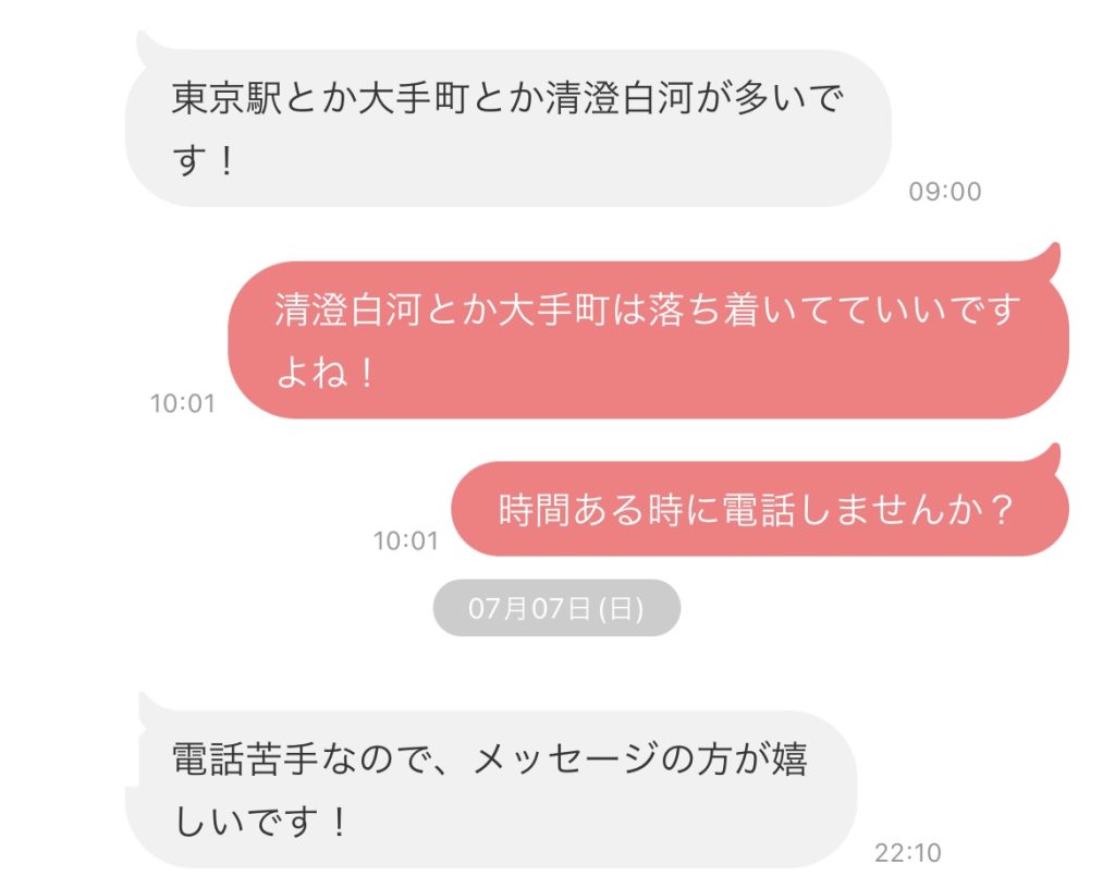 「まずはメッセージで」ということは、「メッセージで仲良くなったら電話しよう!」というサインであるにも関わらず、まだ関係を築いていない状態で電話を打診してしまった。