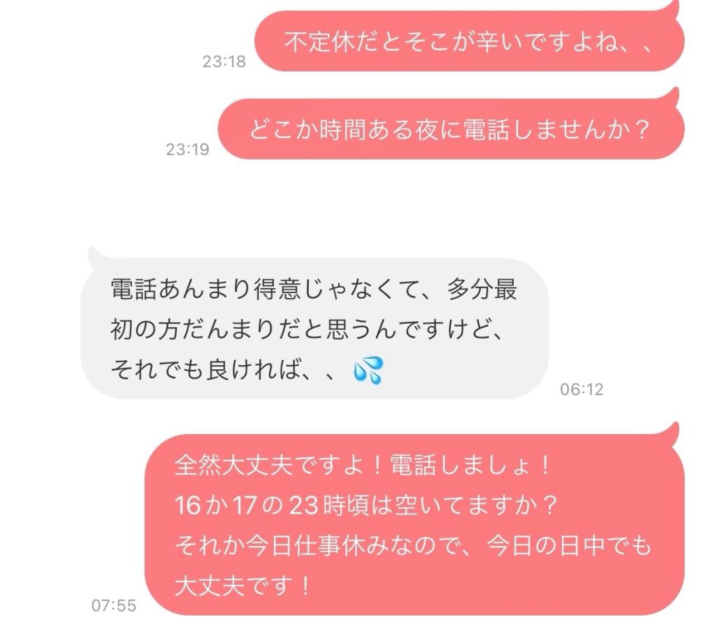 ✔ある程度メッセージを重ねたら、電話を打診する。